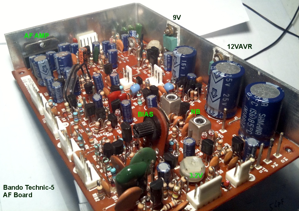 일단 목욕을 좀 시키고 찌그러진 부분을 폈습니다. 기본적인 것들을 점검하고 전원을 넣었는데, AF amp만 작동하고 IF의 노이즈도 안들립니다. 가만 살펴보니, 커버가 찌그러지면서 IF 기판에 충격을 줘서 몇몇 군데 코넥터 주변의 납땜이 약해지고 패턴이 끊기기도 한걸 발견하게 되었습니다. 간단히 수리하고 다시 전원을 넣으니 수신이 잘 됩니다! 본격적으로 목욕을 시키고 전면 패널도 때를 뺐습니다.