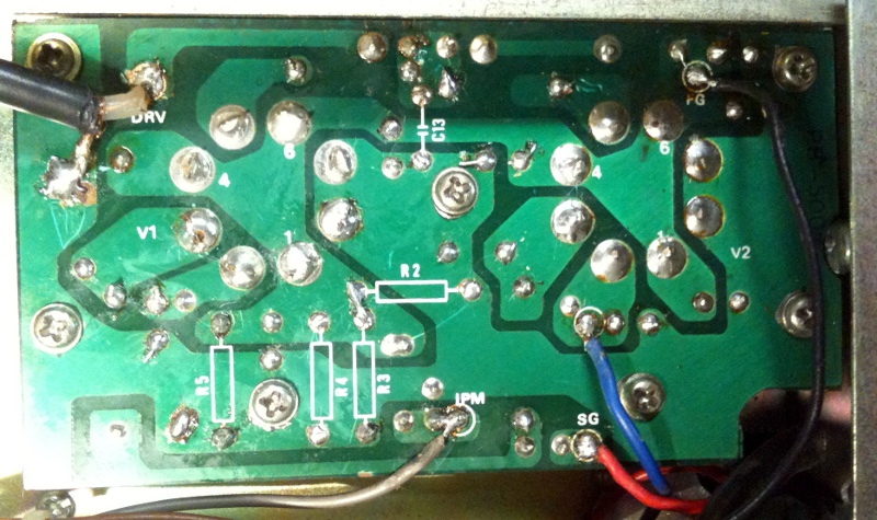 드라이버인 12BY7A가 약해서 교체하였고, 원래 쓰던 6146B 두 개는 아직 건강한 것으로 그대로 쓰기로 했습니다. 7MHz에서 120W가 나오고 28 MHz에서도 100W가 나옵니다. 아이들에서 50mA가 흐르게 바이어스를 세트했습니다. 스크린 전압은 215V 정도. 다 된줄 알고 마침 CQWW SSB 콘테스트가 진행중이라 교신을 시도했더니 디스토션이 심해서 못알아듣겠다고 하는겁니다. 마이크의 문제인줄 알고 바꿔서 해봐도 여전히 그렇답니다. 모니터할 때는 마이크 게인을 줄이고 수신기로 들었는데, 그러면 괜찮고 마이크 게인은 조금만 올려도 오디오가 완전히 망가지는 것입니다. 일주일 후에 시간이 나서 IF부터 점검하니 신호가 찌그러집니다. 그래서 변조부 바로 다음에서 신호를 들어봐도 찌그러집니다. 변조부가 있는 IF 보드를 들어내서 자세히 보니 다이오드가 하나 깨져 있네요. 마침 1N60을 구해둔게 있어서 바로 교체 했고, 오디오가 정상으로 돌아온 것을 확인했습니다.