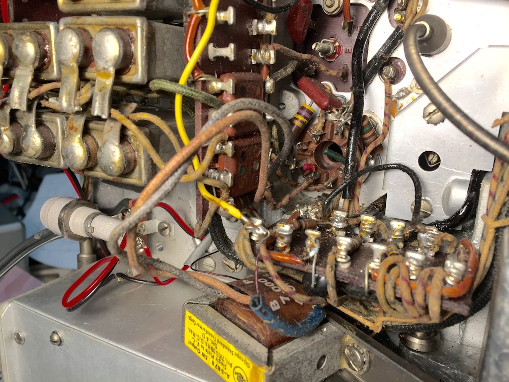 The audio output tube was converted a 6V6 octal tube at some point. I corrected the cathode bias circuit and installed a better output transformer.