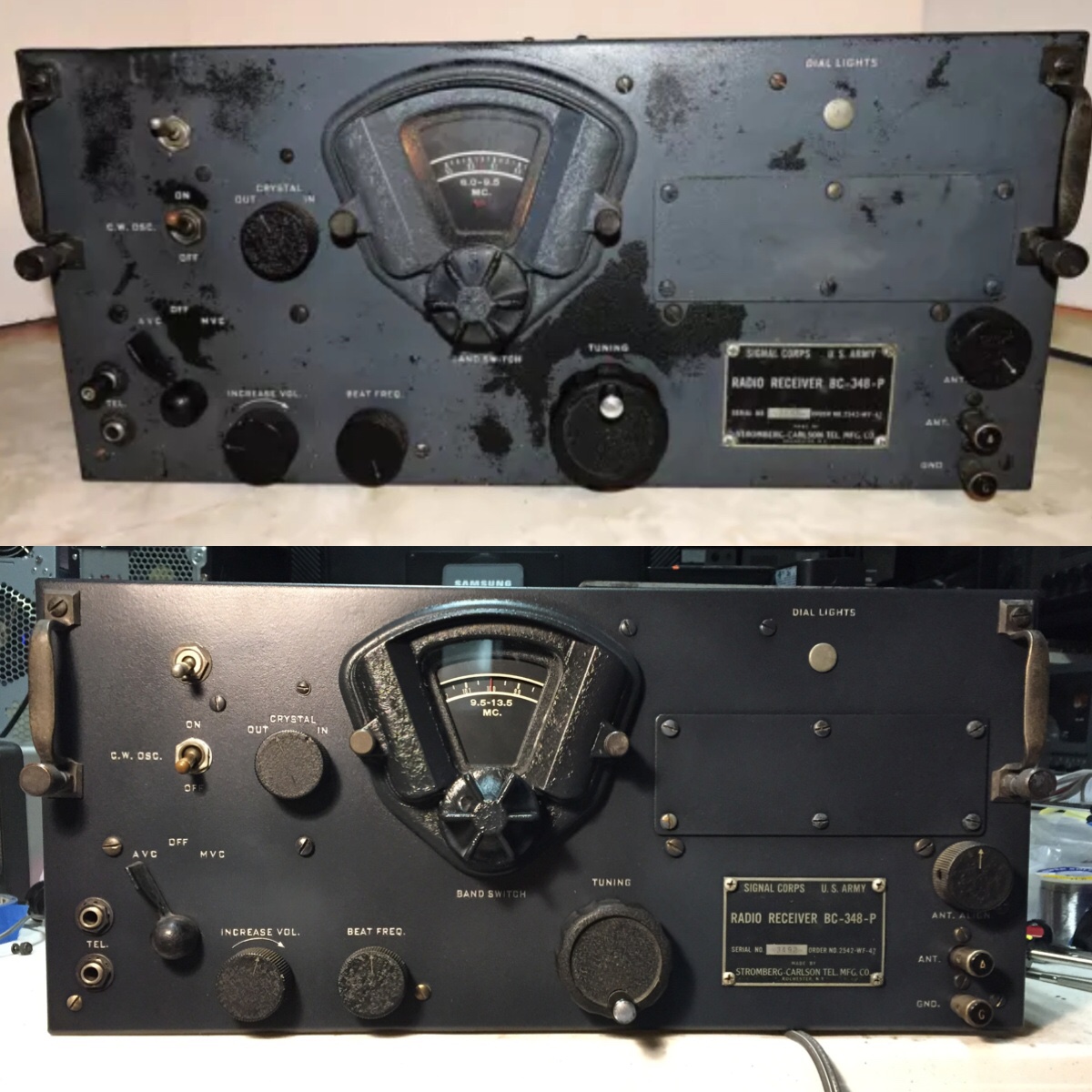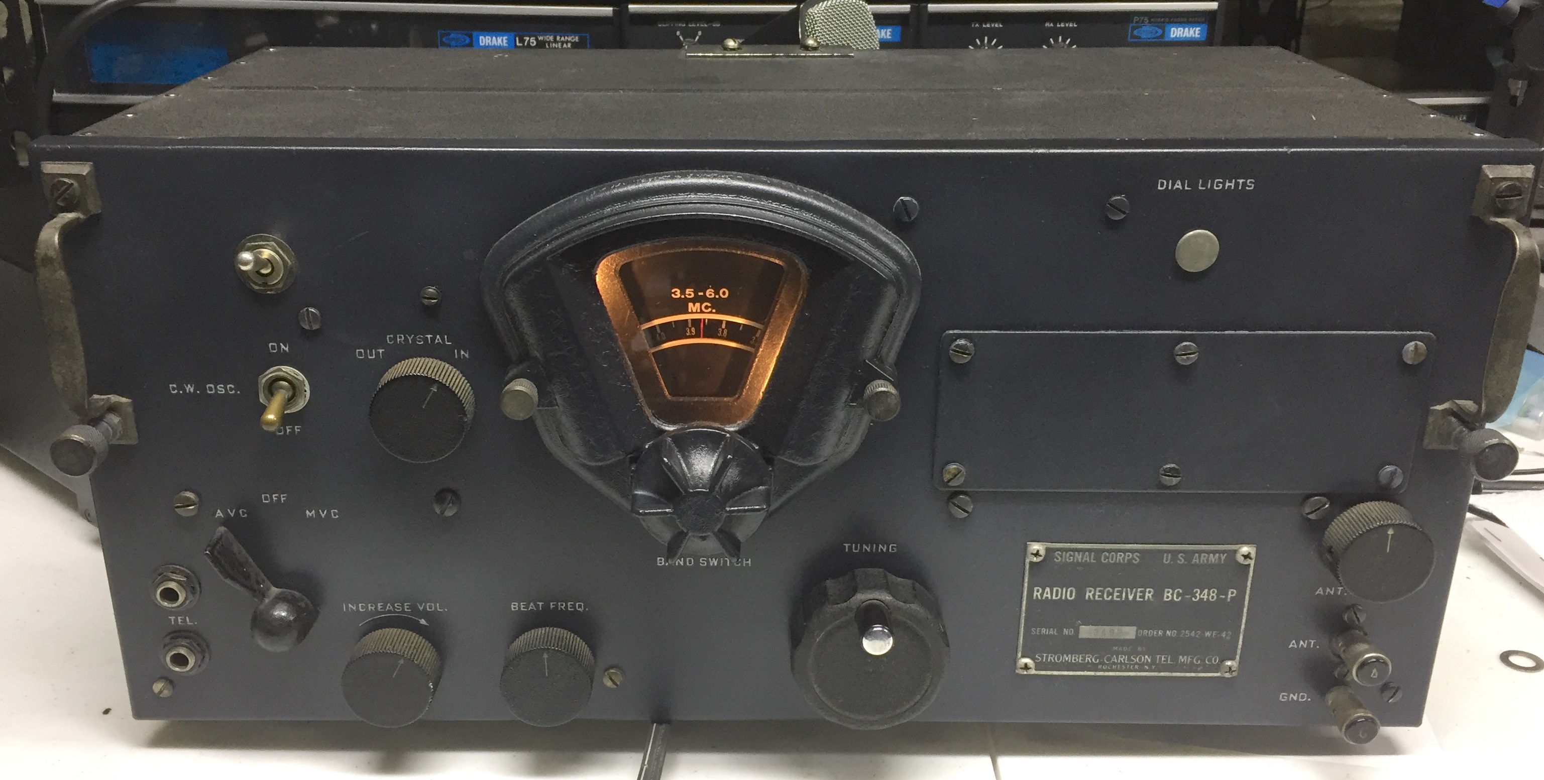 This particular unit (ser# 3492) was produced in 1943 by Stromberg-Carlson as part of the 1942 contract, 2542-WF-42. In addition to the shortwave bands covering 1.5MHz to 18MHz, it is capable of receiving 200kHz to 500kHz. BMI and CMI beacons were heard on this reciver. It was mainly used on the B17 bombers and later on the B29.